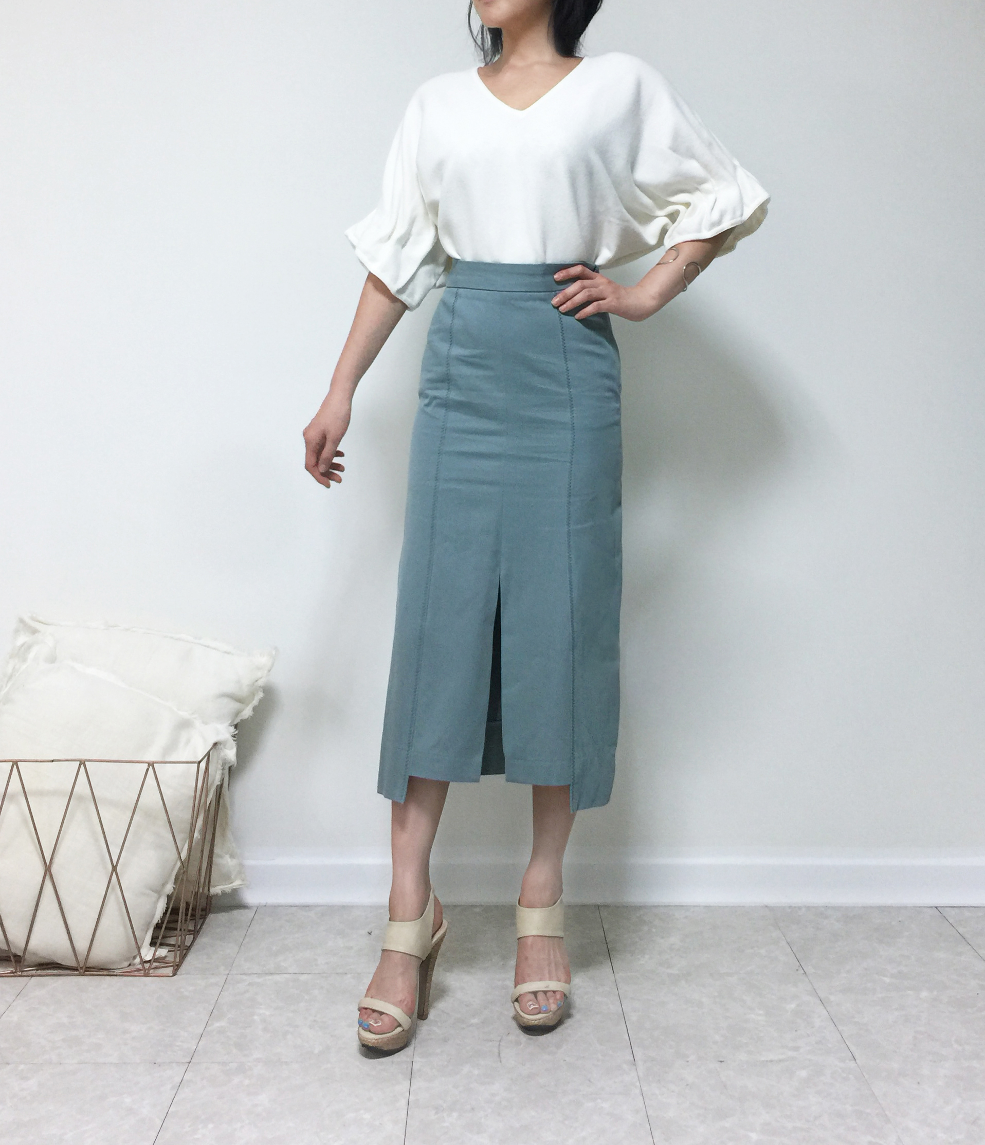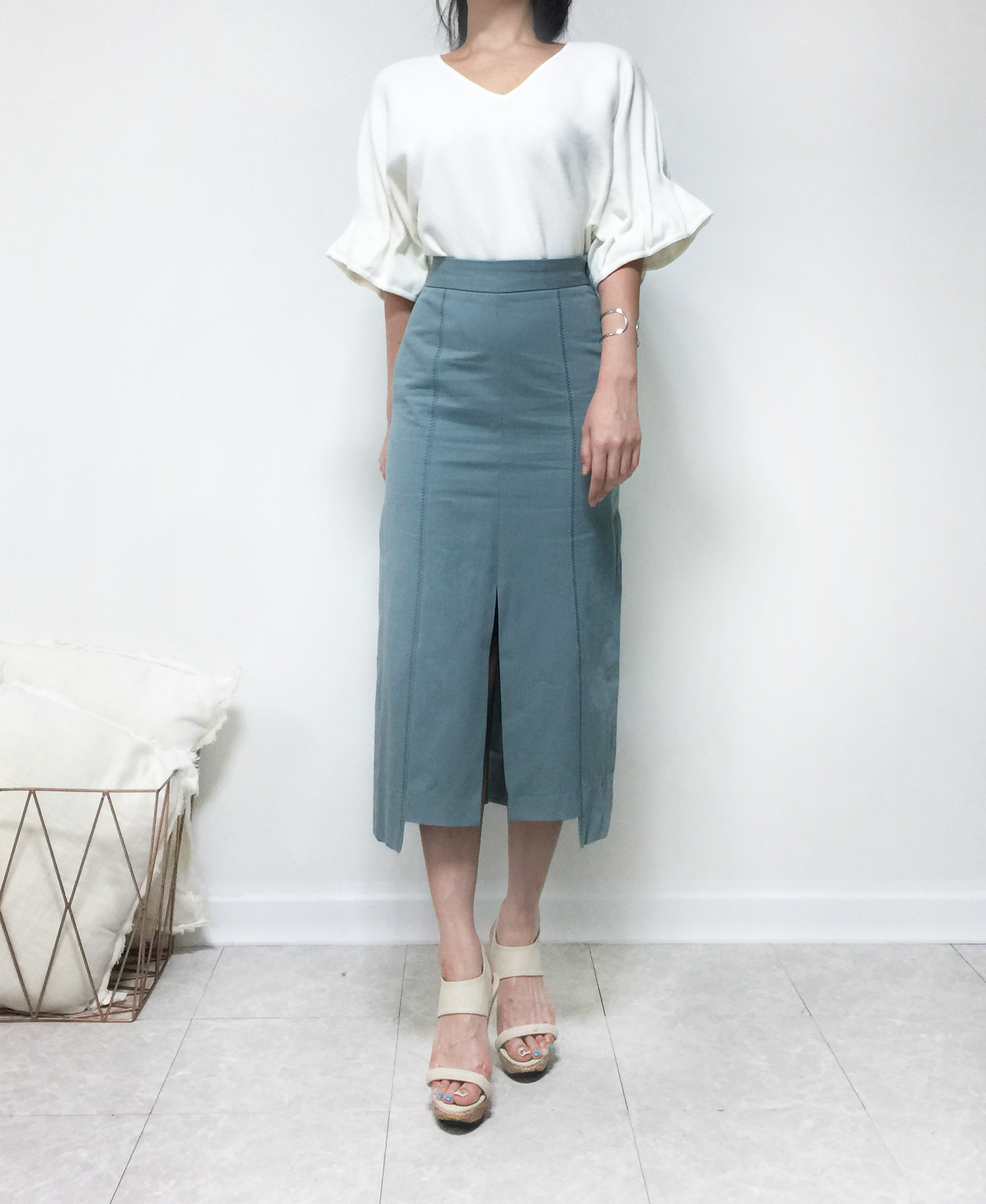 H line mint long skirt h skirt cutting autumn style goddess look skull