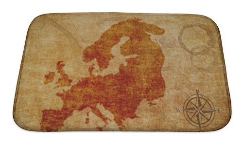 Gear New No Slip Microfiber Memory Foam Old Europe Map on Parchment Bath Rug Mat, 24" X 17"