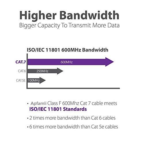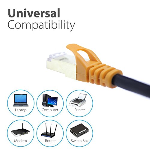 Made of 100% bare copper wire and 50 micron gold plated Shielded RJ45 plugs, Cat7 Network patch cables provide durability and ensure minimal interference