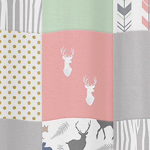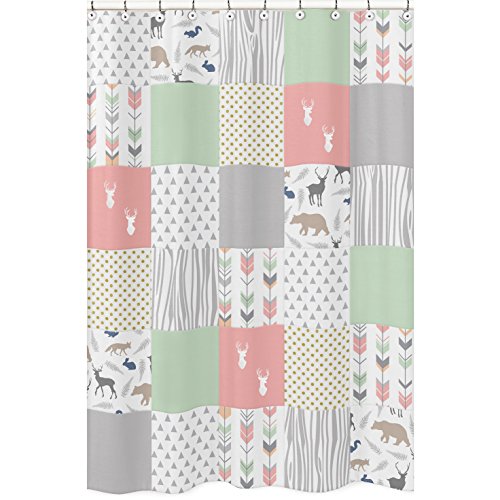 Sweet Jojo Designs Coral, Mint and Grey Woodsy Animal Polka Dot Arrow Girls Kids Bathroom Fabric Bath Shower Curtain