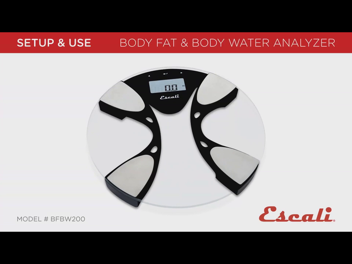 Escali BFBW200 Glass Body Fat/ Body Water Digital Bathroom Scale, 440lb/200 Kg