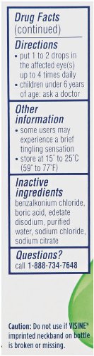 -. Binding : Health and Beauty -. Brand : Visine -. Color : A4063 -. Label : Visine -. Manufacturer : Visine -. NumberOfItems : 1 -. ProductGroup : Health and Beauty -. ProductTypeName : HEALTH_PERSONAL_CARE -. Publisher : Visine -. Size : oz -. Studio : Visine -. Title : Visine Sterile Eye Relief