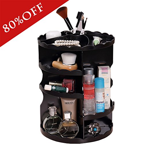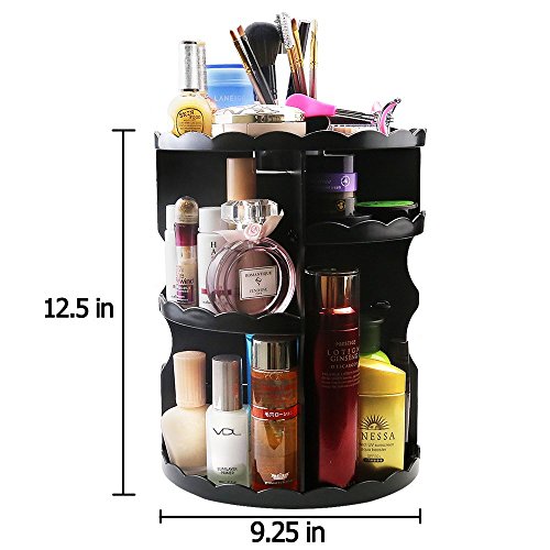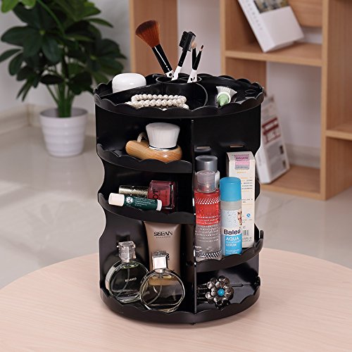Greatlevel 360 Rotating Large Capacity Makeup Organizer-Revolving Adjustable Cosmetic Storage, Makeup Cosmetic Organizer Large Capacity for Makeup Brushes/Different Types Cosmetics/Accessories (Black)