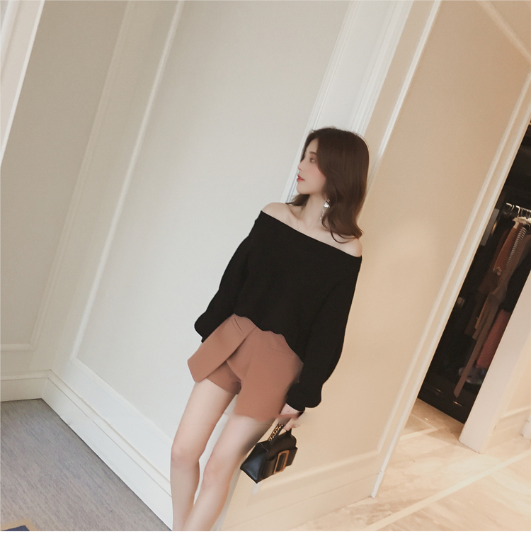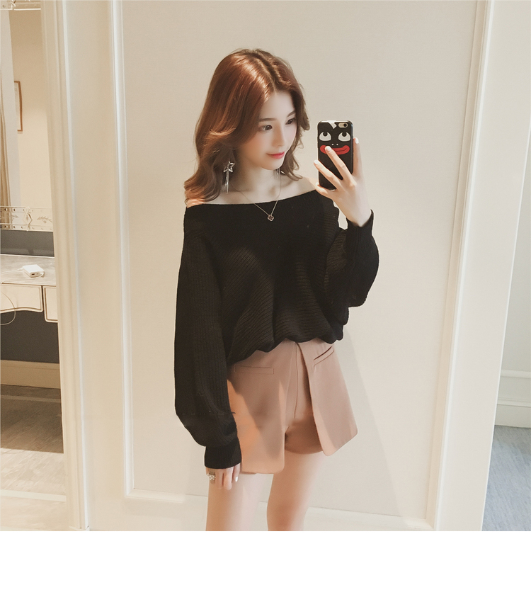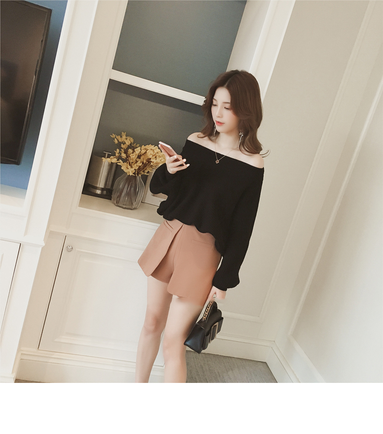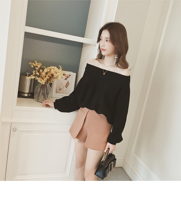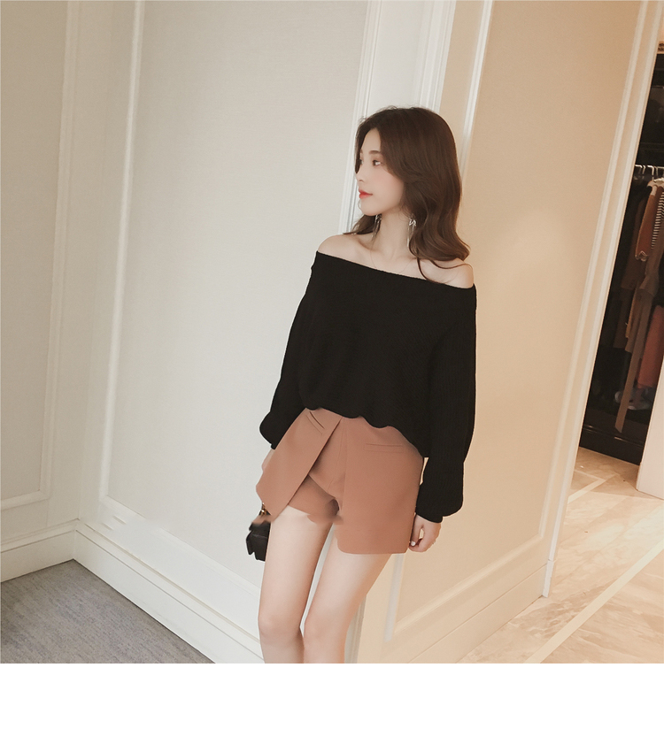 Beige Black Cozy soft Cute laurel fall off shoulder knit sleeveless women