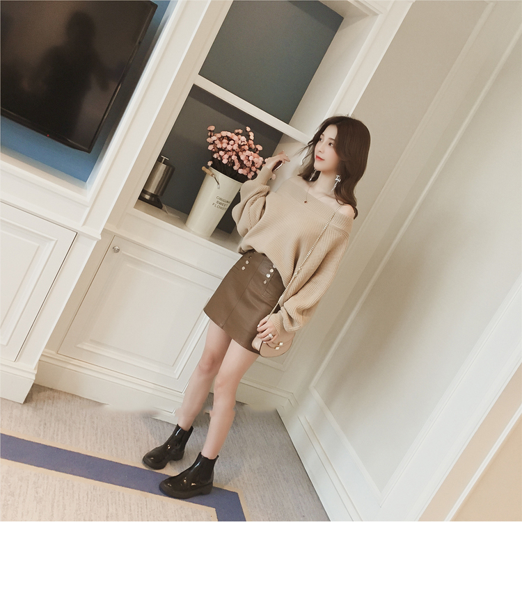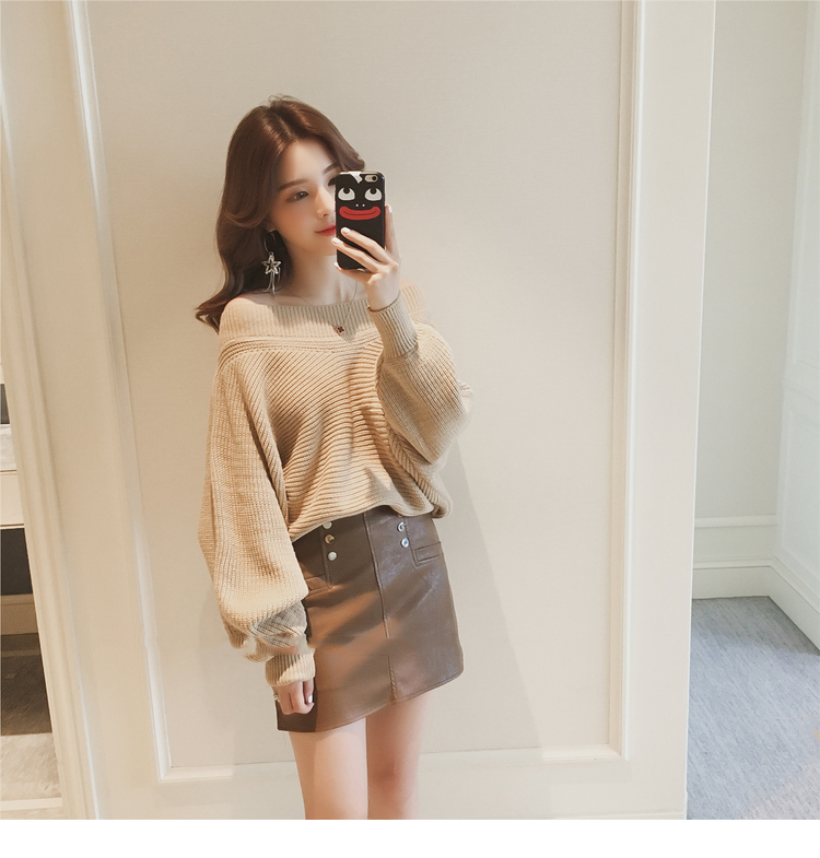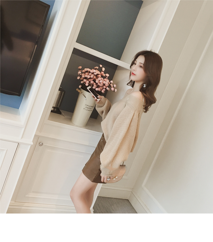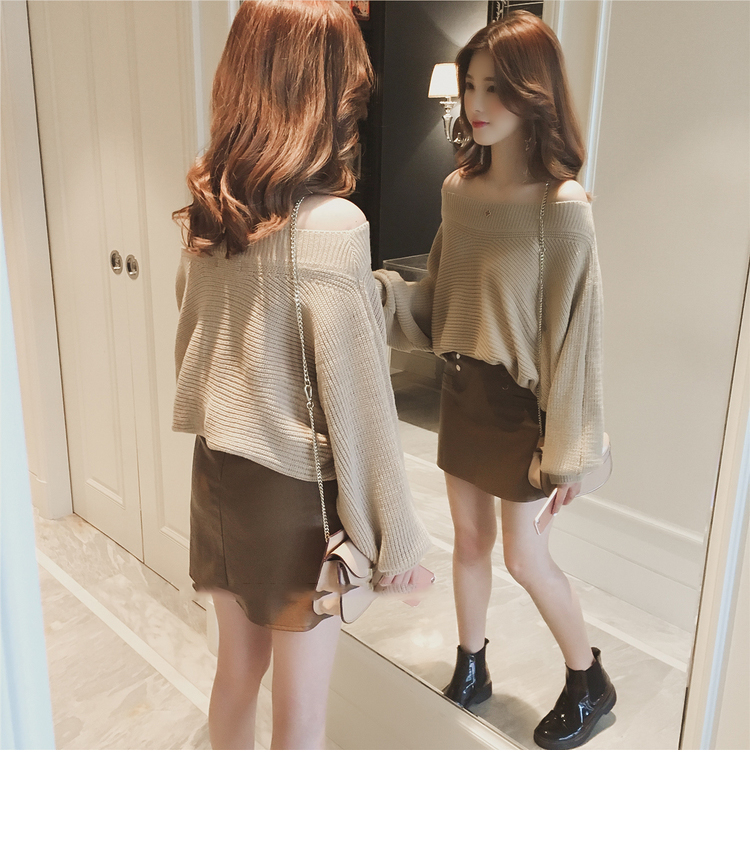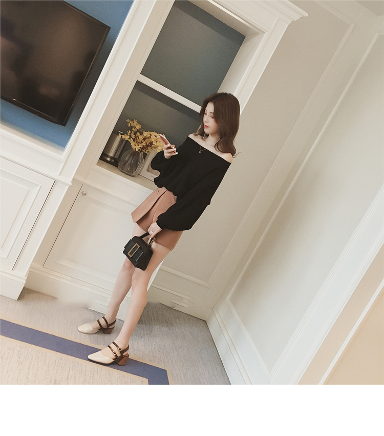 Beige Black Cozy soft Cute laurel fall off shoulder knit sleeveless women