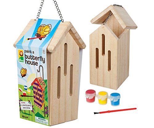 -. Feature : Includes paints of red, blue, yellow; each packaged in resealable containers / Includes color chart for mixing colors / Roof lifts off easily for easy access for adding natural elements / 3 elongated holes on front wall provide easy access for butterflies / Includes butterfly house, 3 paints, paintbrush