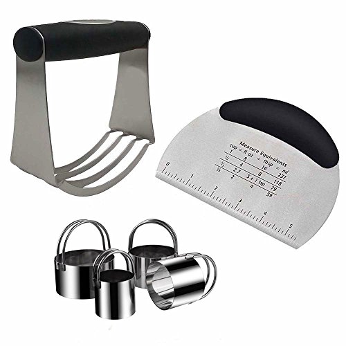- ★ CHARACTERISTIC: Curved Design for Pastry Blender & Round Biscuit Cutter, quickly incorporate cold pieces of butter into flour and other dry ingredients. The stainless steel biscuit cutters slice biscuits evenly through dough perfectly. Biscuit Cutter Set Sizes: Dia. 5/ 6/ 7/ 8 cm