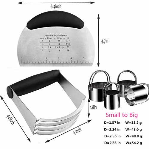 - ★ HEAVY DUTY & NON- SLIP: Stainless Steel pastry scraper and dough blender have a rubber non-slip handle that is ergonomically designed for you making your bake easier. They are ideal for making neat circles of pastry dough, cookies or doughnuts