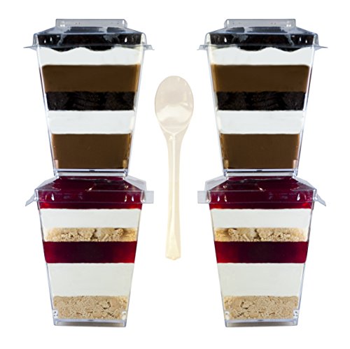 - COMPLETE HOME DESSERT KIT (30 CUPS, 30 SPOONS & 30 LIDS) - This excellent kit contains 30 5 oz Cups and matching spoons! BONUS, based on customer requests now also innovative secure LIDS that makes moving and storing your desserts easy while at the same time protecting them! This kit should be in every dessert lovers home!