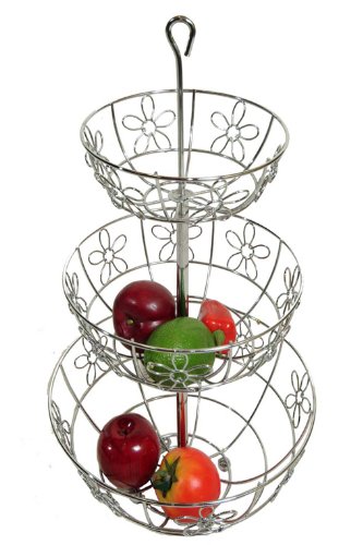 3 Tiers Chrome Fruit Basket W/daisy Design (Item #25-671)
