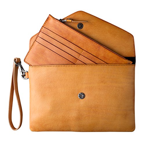 STRUCTURE: Magnetic snap closure. 1 removable card case wallet, 1 removable wristlet.