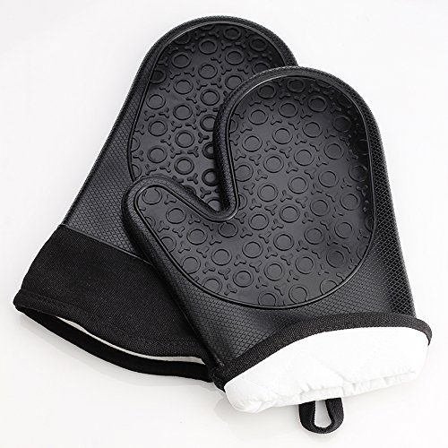 Non-slip Grip & Waterproof - Each of our silicone oven mitts comes with patterned gripping surfaces to reduce the risk of accidents.Never again worry about slipping ,plates, hot pans or steamy ovens,lets you work with food in hot water or oil,easy to clean with a damp cloth