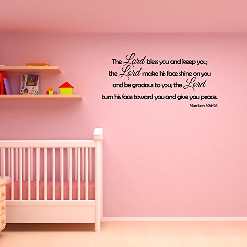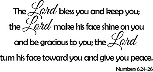-. Binding : Kitchen -. Brand : WallDecalQuote -. Color : Black -. EAN : 0799559087197 -. Feature : ★ MADE IN THE USA - From 7 years indoor/outdoors self-adhesive Vinyl Material. / ★ DECAL IS MADE WITH HIGH QUALITY ORACAL 651 VINYL MATERIAL / ★ EASY TO APPLY: Sticker can be applied to any hard and smooth surface. Once the decal is on the wall the only thing left are the letters. ★ IT IS EASY TO REMOVE: No residue is left on the wall (note: decal is REMOVABLE but not REUSABLE). / ★ DECAL SIZE: 28" Wide x 13" High inches (71 cm Wide x 33 cm High). ★ DECAL COLOR: BLACK. / ★ EASY TO HANDLE: The whole quote comes on one single piece, which sticks to the wall. -. IsAutographed : 0 -. PackageQuantity : 1 -. ProductGroup : Home -. ProductTypeName : HOME -. Size : 28"W x 13"H -. Title : Wall Decal Quote Numbers 6:24-26 The Lord Bless You Vinyl Wall Art Sticker Decor Sign -. UPC : 799559087197