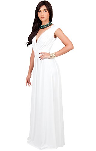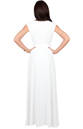 Koh Koh Womens Long Cap Short Sleeve Cocktail Evening Sleeveless Bridesmaid Wedding V-neck Empire Waist Vintage Gown Gowns Maxi Dress Dresses for Women, Ivory White M 8-10 (1)
