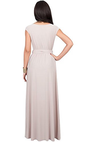 Koh Koh Womens Long Cap Short Sleeve Cocktail Evening Sleeveless Bridesmaid Wedding V-neck Empire Waist Vintage Gown Gowns Maxi Dress Dresses for Women, Tan Light Brown L 12-14 (2)