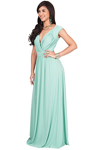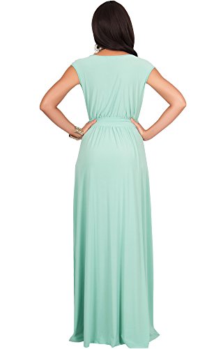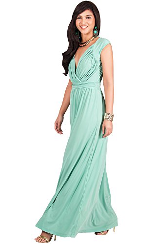 KOH KOH Womens Long Cap Short Sleeve Cocktail Evening Sleeveless Bridesmaid Wedding V-neck Empire Waist Vintage Gown Gowns Maxi Dress Dresses for Women, Moss/Mint Green M 8-10 (1)