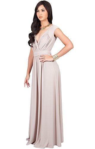 Koh Koh Womens Long Cap Short Sleeve Cocktail Evening Sleeveless Bridesmaid Wedding V-neck Empire Waist Vintage Gown Gowns Maxi Dress Dresses for Women, Tan Light Brown M 8-10 (1)