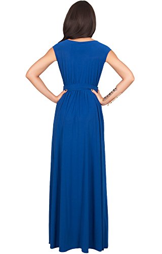 Koh Koh Womens Long Cap Short Sleeve Cocktail Evening Sleeveless Bridesmaid Wedding V-neck Empire Waist Vintage Gown Gowns Maxi Dress Dresses for Women, Cobalt/Royal Blue L 12-14 (2)
