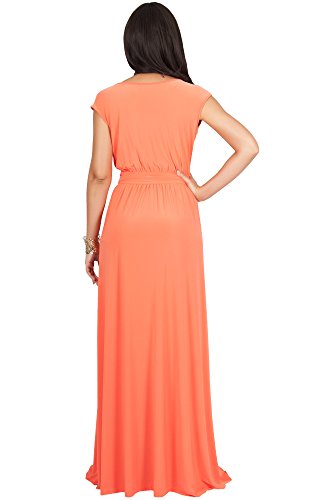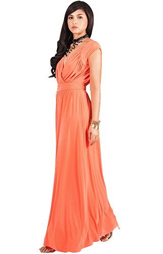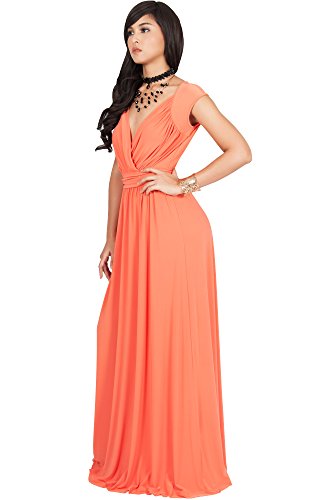 KOH KOH Womens Long Cap Short Sleeve Cocktail Evening Sleeveless Bridesmaid Wedding V-neck Empire Waist Vintage Gown Gowns Maxi Dress Dresses for Women, Coral M 8-10 (1)