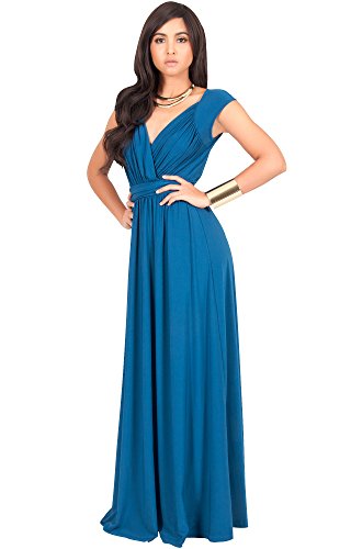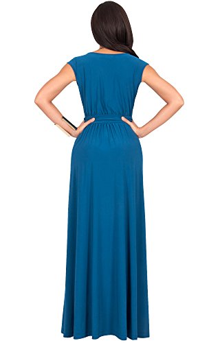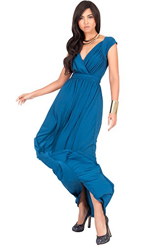 Koh Koh Womens Long Cap Short Sleeve Cocktail Evening Sleeveless Bridesmaid Wedding V-neck Empire Waist Vintage Gown Gowns Maxi Dress Dresses for Women, Blue Teal M 8-10 (1)