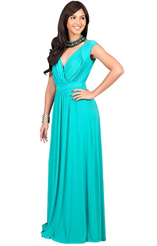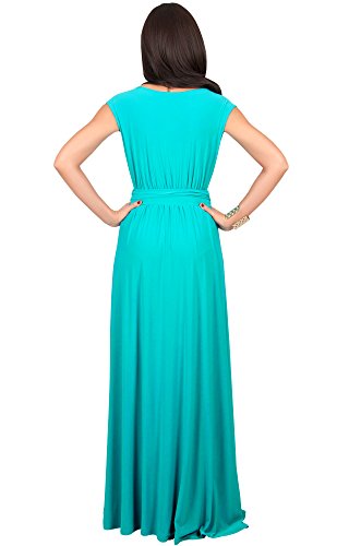 Koh Koh Womens Long Cap Short Sleeve Cocktail Evening Sleeveless Bridesmaid Wedding V-neck Empire Waist Vintage Gown Gowns Maxi Dress Dresses for Women, Turquoise M 8-10 (1)