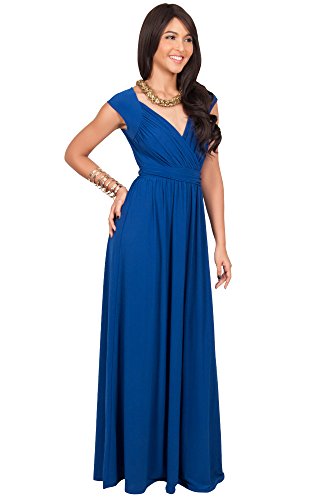 Koh Koh Womens Long Cap Short Sleeve Cocktail Evening Sleeveless Bridesmaid Wedding V-neck Empire Waist Vintage Gown Gowns Maxi Dress Dresses for Women, Cobalt/Royal Blue M 8-10 (1)