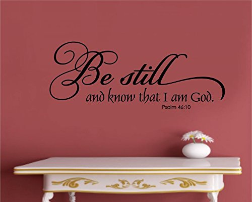 -. Feature : This is for one vinyl decal sticker that says: Be still and know that I am God. Psalm 46:10 / Overall size of decal is 35" wide by 14" high. (size can be reduced upon request) Colors shown: black matte / See pictures for more color choices and email color choice to me if you want one other than the color shown. If no color is chosen, it will be sent as shown. / Easy to apply, comes with instructions. Made in the USA with high quality removable vinyl. Looks painted on.