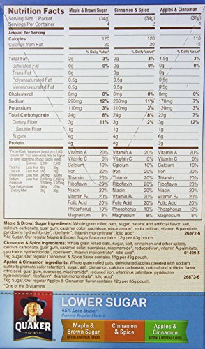 All of your favorite Quaker flavors and half the sugar? Good luck picking just one. Quaker Lower Sugar Variety Pack gives you the choice between Maple & Brown Sugar, Cinnamon & Spice and Apples & Cinnamon. Only Quaker can give you variety, delicious flavor and only half the sugar.Feature