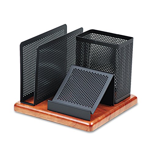 Rolodex Distinctions Desk Organizer, Metal/Wood, 5-7/8" x 5-7/8" x 4-1/2", Black/Cherry (1813918)