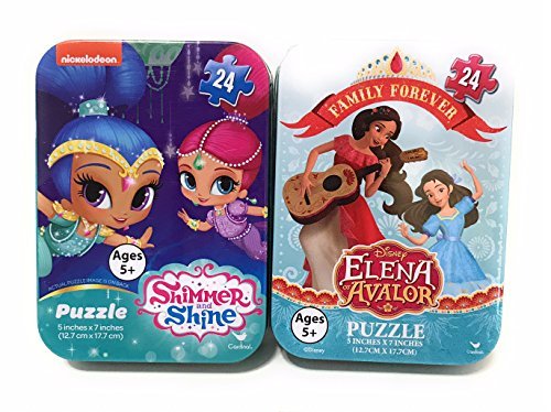 -. Binding : Toy -. Brand : D.Jr. -. EAN : 0682269271973 -. Feature : Elena Of Avalor 24 Pieces Shimmer And Shine Puzzle 24 Pieces / 2 Separate Tin Boxes / Each Puzzle Measures 5" x 7" / Includes Tin Boxes For Storage (Mom's Friend) / For Ages 5+ -. IsAdultProduct : 0 -. Label : Cardinal -. Manufacturer : Cardinal -. ProductGroup : Toy -. ProductTypeName : TOYS_AND_GAMES -. Publisher : Cardinal -. Studio : Cardinal -. Title : Mini Jigsaw Puzzles: Elena of Avalor - Shimmer and Shine (24 Pieces Each) in Travel Tin Boxes - Girls Collectible Set of 2 -. UPC : 682269271973