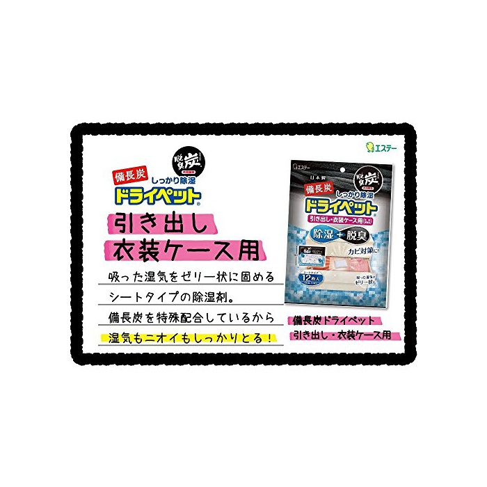 원본상품명: 備長炭ドライペット 除?? 引き出し衣?ケ?ス用 25g ×12シ?ト