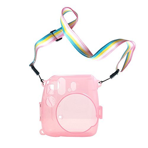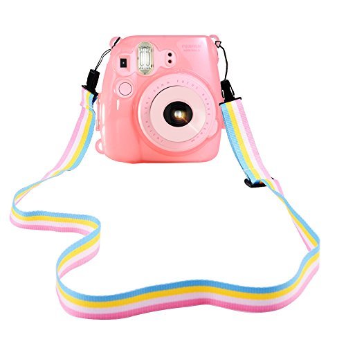 Fujifilm Instax Mini 8 / Mini 8+ / Mini 9 Crystal Case - Wolven Crystal Camera Case With Adjustable Rainbow Shoulder Strap for Fujifilm Instax Mini 8 / Mini 8+ / Mini 9 Instant Camera - Pink Clear