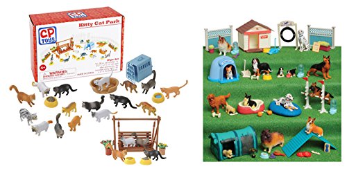-. Feature : LOTS OF DOGGIE FUN: This dog academy includes everything you need to train, exercise, board, groom, award, and even cleanup after your favorite dogs and puppies. With so many different toys, the possibilities are endless. / 51 REALISTIC DOGGIE PIECES: This dog academy includes brushes for grooming, bones, awards, dog houses, dog beds, food bowls, water bowls, fences, jumps, plants, plaques, toys, and 15 different dogs! / FELINE FRIENDS: Your little animal lover will enjoy hours of imaginative fun with our CP Toys Kitty Cat Park set. This 38-piece playset features an assortment of miniature figurines crafted from durable plastic and designed to withstand years of play. / IMAGINATIVE PLAY: Encourage creativity, build fine motor skills, and stimulate narrative play with this super cute set. The 16 cats, representing assorted breeds and fur patterns, can roam about the grounds, eat from their food dishes, and relax on the movable swing set. / SPECIFICATIONS: Includes (1) Kitty Cat Park with 16 cats and 22 accessories; and (1) Dog Academy with 15 dogs and 36 accesories.