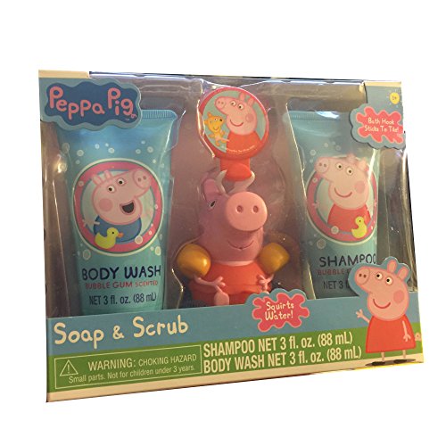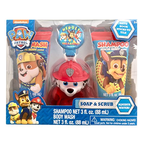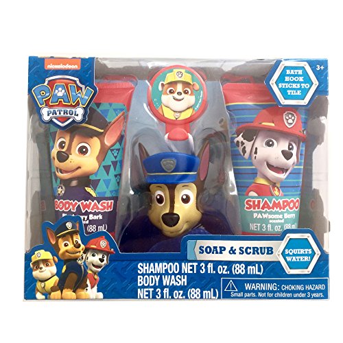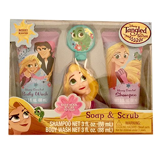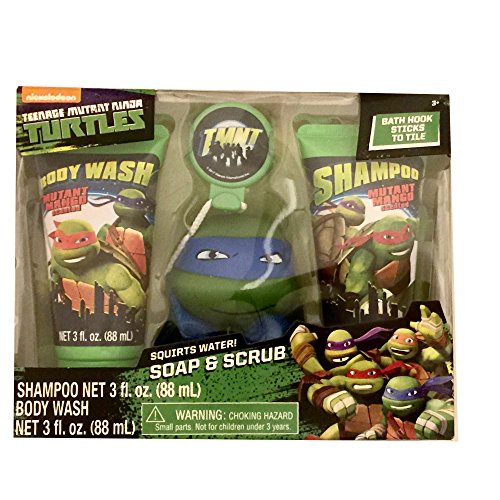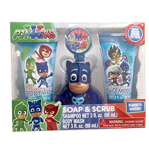 Each themed set comes with 3-oz shampoo, 3-oz body wash and a bath scrubby with hook