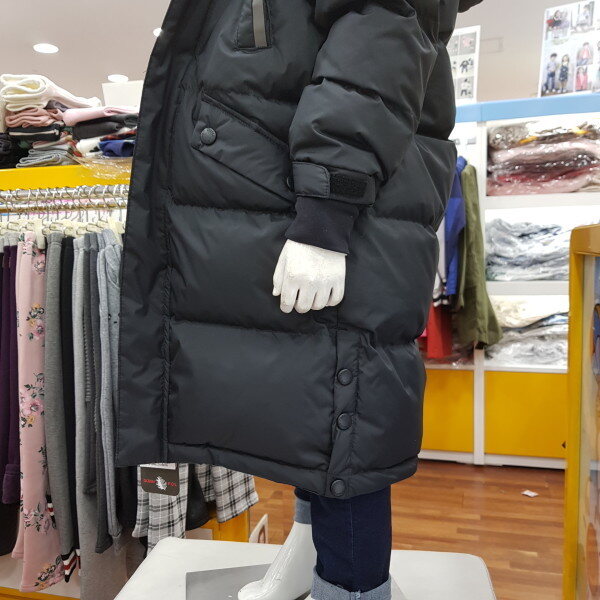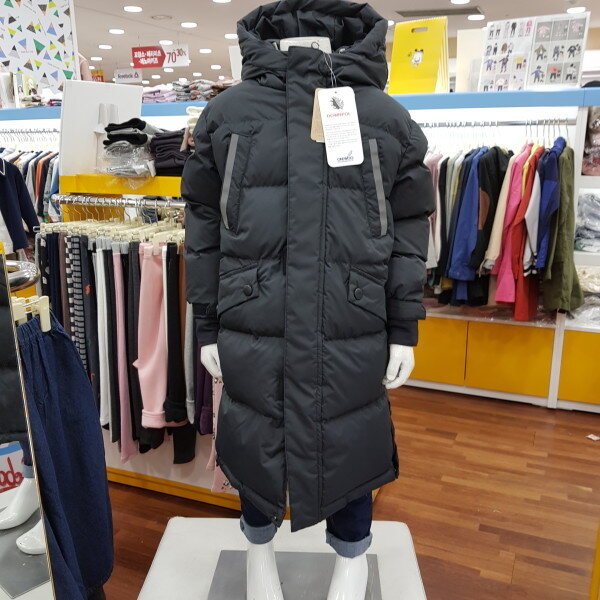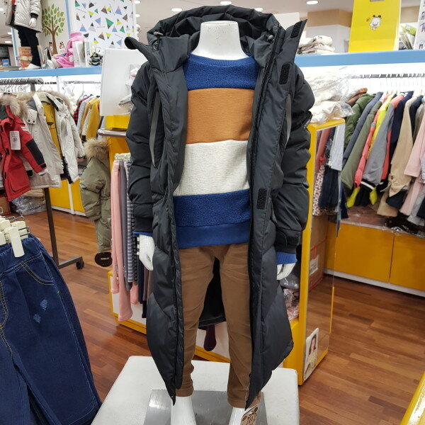 리틀밥독 다운롱점퍼입니다 사이즈정사이즈며 마네킹 110입었어요 통통한 친구는 한사이즈 크게주문해주세요