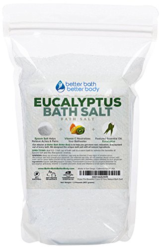 Eucalyptus Bath Salt 32oz (2-Lbs) - Epsom Salt Bath Soak With Eucalyptus Essential Oils & Vitamin C - Enjoy Refreshing Aromatherapy Benefits With This Natural Bath Soak - No Perfumes No Dyes