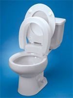-. Feature : Unique hinged seat uses standard toilet seat and lid. / Features a seat riser made of two parts which are hinged together, allowing the ring to be lifted in the same manner as your standard toilet seat. / Installed using a standard toilet seat and cover and does not appreciably change the appearance of the toilet. / . It elevates the seating position by 3" (7.6 cm) for easy sitting and rising. / The hinged feature makes cleaning as easy as 1-2-3.