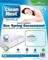 -. Brand : CLEAN BRANDS -. EAN : 0724235237832 -. Feature : Designed with affordability in mind, the CleanRest PRO BoxSpring features our independently certified Zip-N-Click closuresystem which is easy to install and easy to inspect. Don't let cost stop you from encasing the most vulnerable area of your bedroom, use a CleanRest Simple box spring cover to prevent bed bug infestation! / Water proof: protecting your mattress from everyday spoilage Tear Proof: Courtesy of our hotel-quality MicroneOne fabric Fool Proof: Optic white fabric allows staff to spot bed bugs more easily Fail proof: Our patented Zip-N-Click closure device denies bed bugs their preferred sanctuary Future Proof: Outlasts the life of the bed bug. / Ready Use -. Label : CLEAN BRANDS -. Manufacturer : CLEAN BRANDS -. PackageQuantity : 1 -. ProductGroup : Home -. ProductTypeName : HOME_FURNITURE_AND_DECOR -. Publisher : CLEAN BRANDS -. Size : Full -. Studio : CLEAN BRANDS -. Title : Clear Brand Boxspring Encasement Full -. UPC : 724235237832