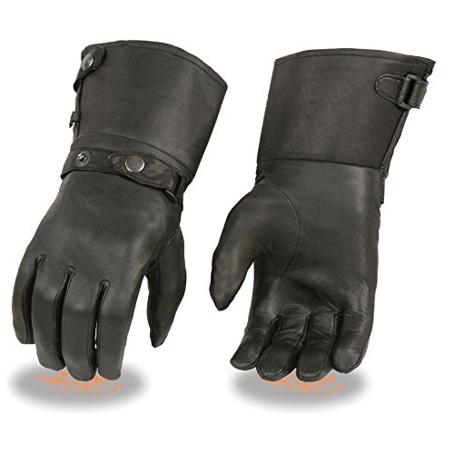 (Milwaukee Leather)/Accessories/Cold Weather Accessories/DIRECT FROM USA/Men's Thermal Lined Leather Gauntlet Gloves w Snap Wrist Cuff (Black)