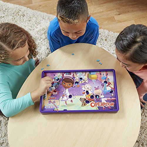 -. Binding : Toy -. Brand : Hasbro -. EAN : 0630509505593 -. Feature : Doc McStuffins Toy Hospital version of the popular Operation game / Kids can pretend to be a doctor at Doc's Toy Hospital / Fix the Boo-Boos and avoid the buzzer / Play solo or with friends / Includes game tray with Disney Junior Doc McStuffins Toy Hospital characters and tweezers, 11 plastic Boo-Boos, and instructions / 2x 1.5V AA alkaline batteries required (Not included) -. IsAdultProduct : 0 -. Label : Hasbro -. Manufacturer : Hasbro -. Model : C0571 -. MPN : C0571 -. PackageQuantity : 1 -. PartNumber : C0571 -. ProductGroup : Toy -. ProductTypeName : TOYS_AND_GAMES -. Publisher : Hasbro -. Studio : Hasbro -. Title : Operation Game: Disney Junior Doc McStuffins Toy Hospital Edition -. UPC : 630509505593 -. Warranty : No Warranty