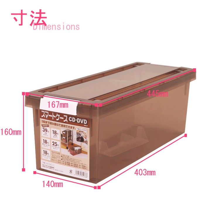 | 収納目安 | CD:約39枚(厚さ約10mmケース)DVD:約18枚(厚さ約15mmケース)wiiソフト:約18枚(厚さ約15mmケース)DSソフト:約25枚(厚さ約16mmケース)PS2・3ソフト:約18枚 |