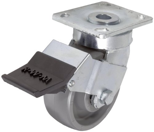 RWM Casters 46 Series Plate Caster, Swivel with Installable Face Contact Brake, Urethane on Iron Wheel