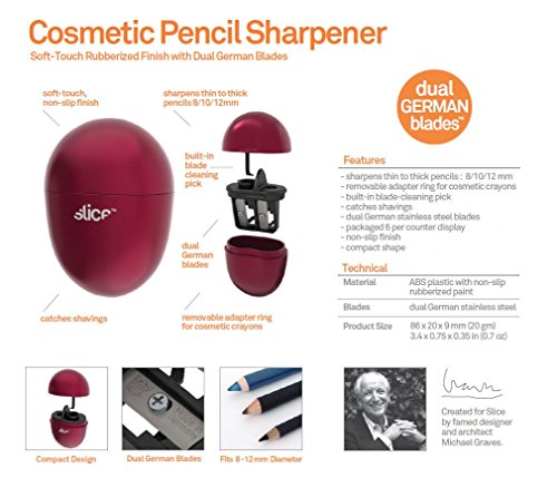 Slice 10430 Cosmetic Sharpener for Thin/Thick Cosmetic Pencils and Crayons, Red