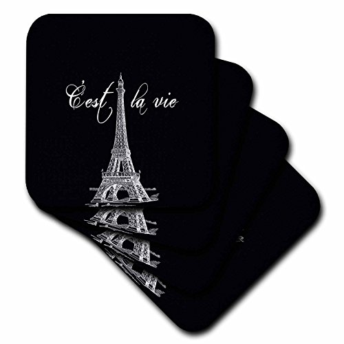 3dRose cst_178953_1 French Black and White Eiffel Tower Soft Coasters (Set of 4)