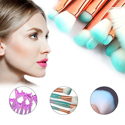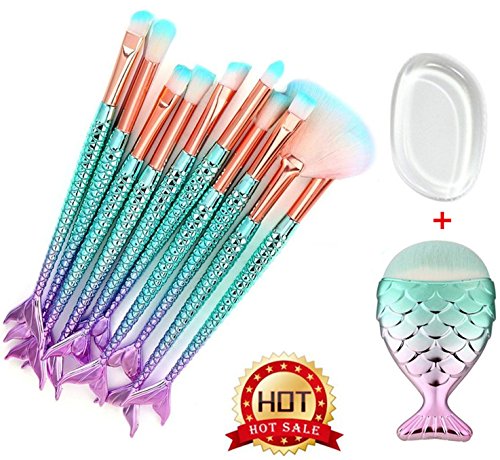 Mermaid Makeup Brushes 12 Pcs, Eyeshadow Brushes Foundation Blush Cosmetic Concealer Eyebrow Makeup Brushes with Silicone Makeup Sponge
