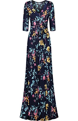 Product DescriptionThis sleek and sexy maxi wrap dress is a must have! This gorgeous wrap maxi features a v-neck line, 3/4 sleeves, and ties around the waist making it flattering for all body types. This maxi can be effortlessly dressed up or down. Perfect for a work, traveling, vacation, bridal/baby showers, weddings, party, date, or other events. The stretch and comfort of the dress also makes it perfect for stylish maternity wear! Pair it with heels, a clutch, and statement necklace for a more formal look or with sandals and a sunhat for a relaxed spring or summer outfit. However you wear it you will look great and feel comfortable from day to night!