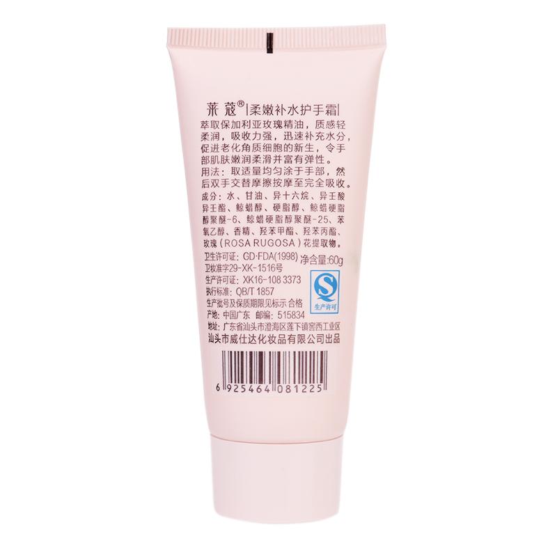 Extraction of rose essential oil, light texture soft, absorbent strong, swift replenishes moisture, promote the new aging skin cells, makes hand skin tender and moist, smooth and elastic.