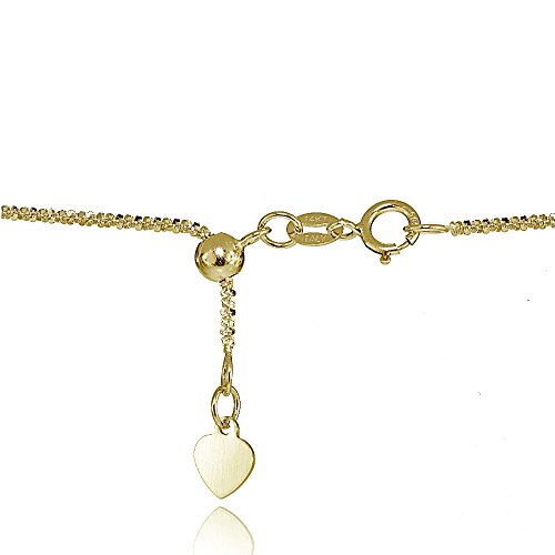 This Italian anklet features a rock rope design in 14k yellow gold, 1.3mm wide. It showcases an adjustable clasp with a dangling heart for design and fit. It opens with a spring ring clasp. The bracelet extends up to 11-inches.
