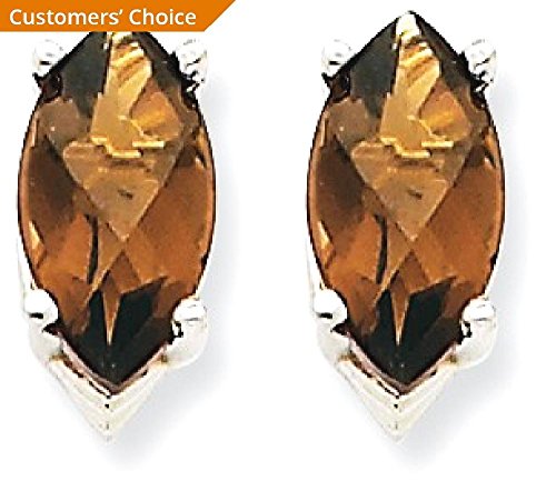 ICECARATS DESIGNER JEWELRY 14K WHITE GOLD 10X8MM MARQUISE CHECKER CUT SMOKY QUARTZ POST STUD BALL BUTTON STUD EARRINGS