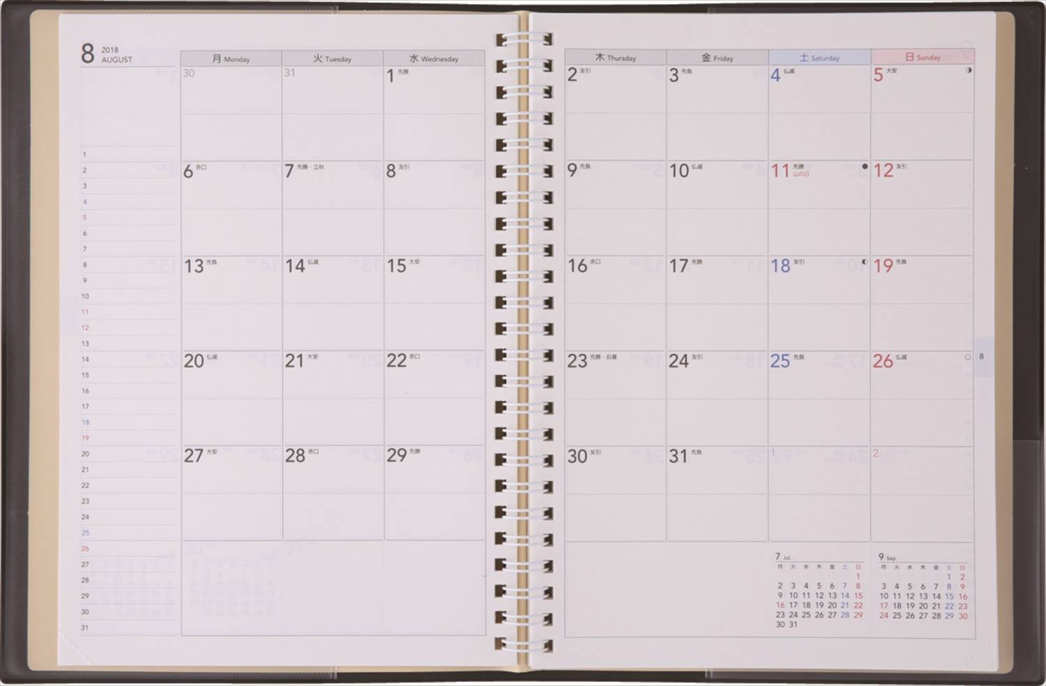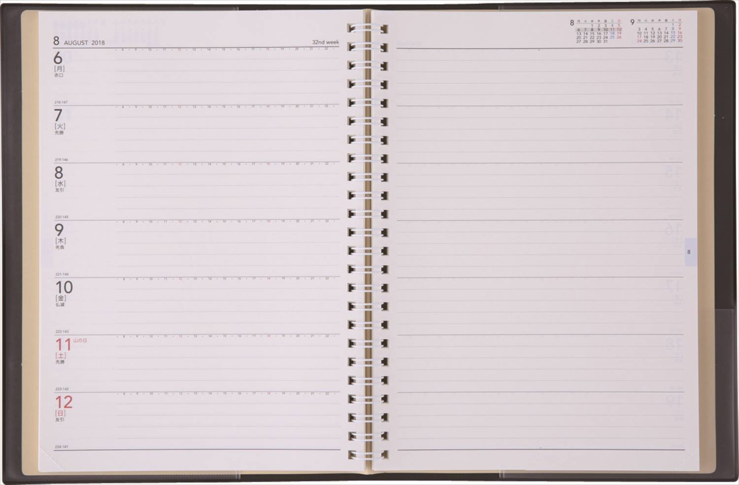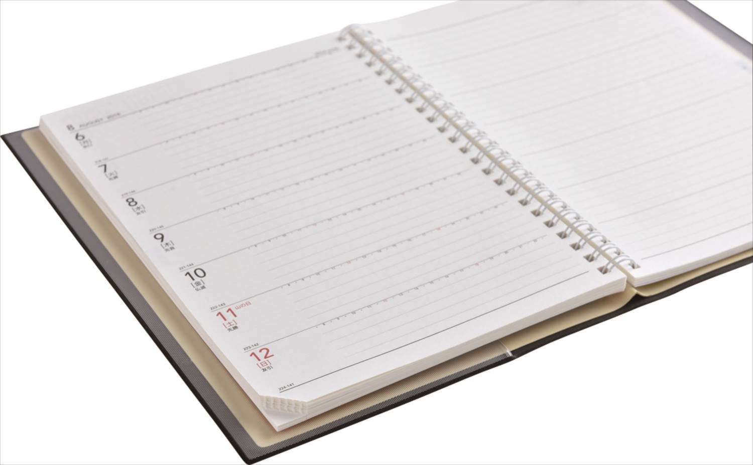 It's an intermediate size between notebook and notebook, but with ordinary A5 schedule book, it is difficult to write with hand on hand. On the other hand, since this product is closed with a double ring, turning around and folding it is easy to write hand-held. Like the notes on the desk, the flexibility you can use for notebooks on the road is a great advantage. Also, as a bargain, it is also possible to incorporate it into the twist ring of LIHIT LAB. Away from the ring and make it as user-friendly as a system notebook. Although it is a well-timed schedule book as it is, it is also fun to customize making use of the advantage of the international standard of 1/3 inch double ring.